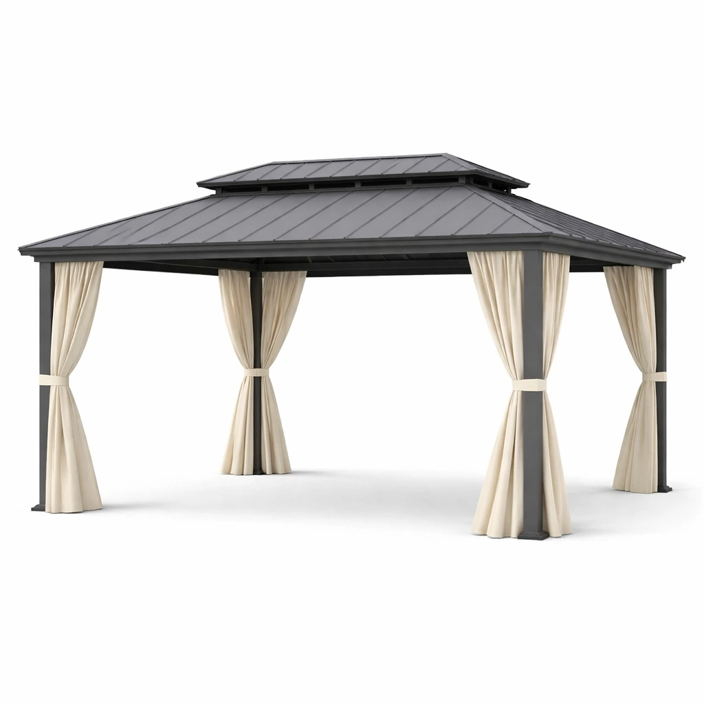 Gazebo rettangolare in alluminio con tetto in acciaio e tende in poliestere