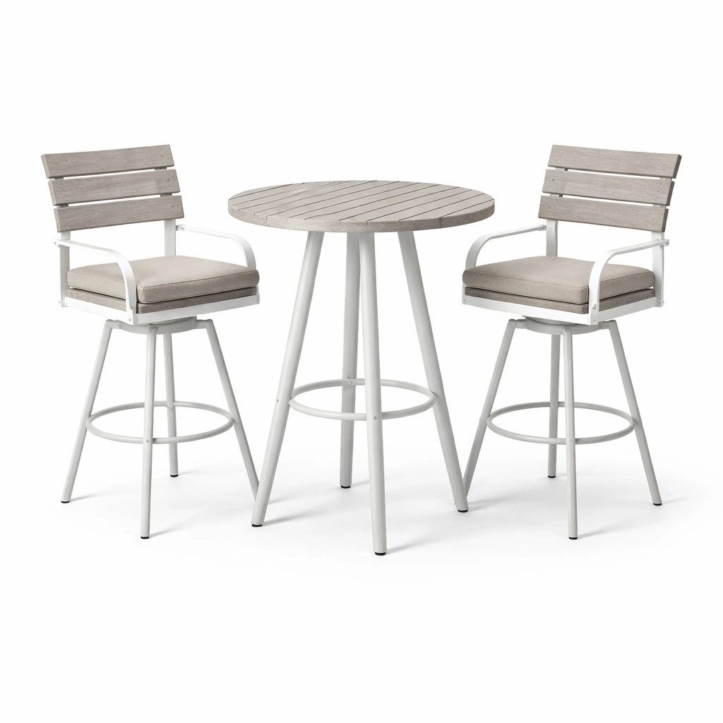 Set bar da esterno con tavolo rotondo in legno composito e sgabelli