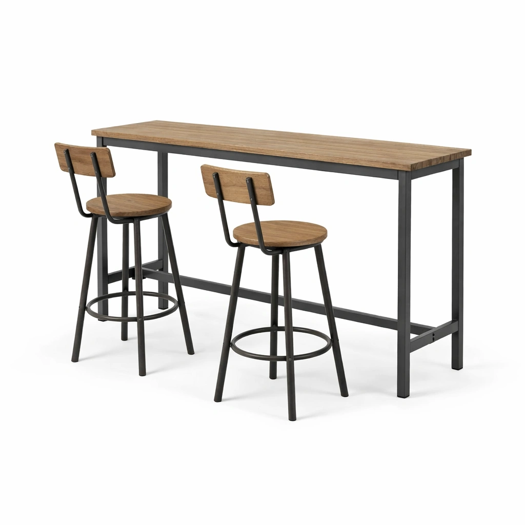 Set bar tavolo alto e sgabelli in legno di acacia e metallo