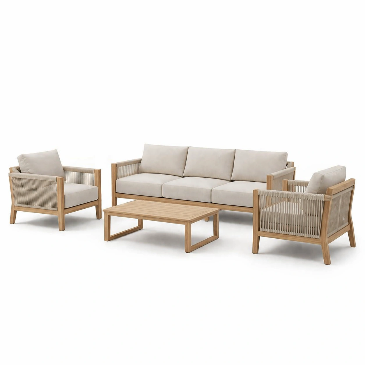 Materiale: Struttura in legno di teak, cuscini in tessuto di poliestere