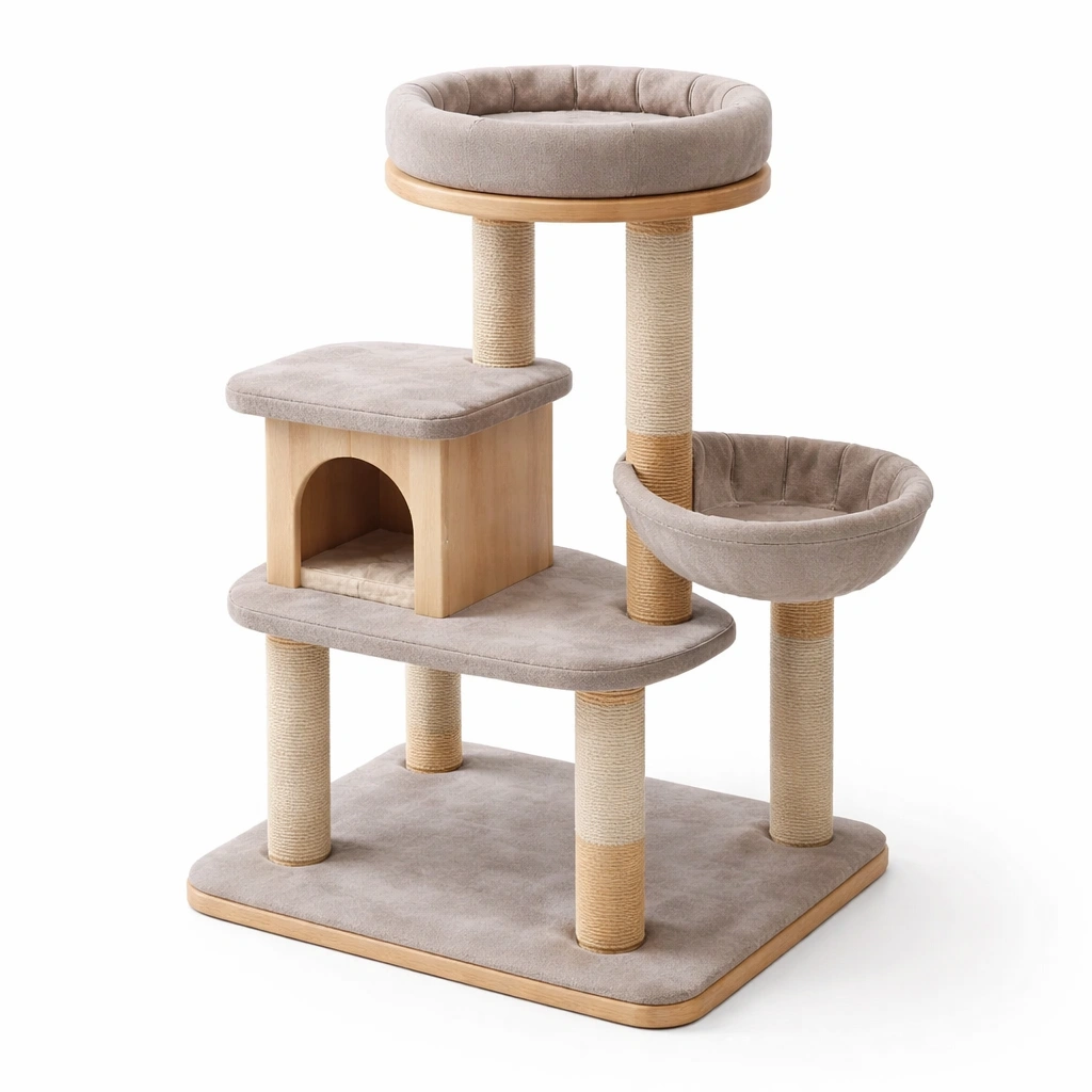 Materiale: Struttura in legno compensato, rivestimento in velluto di poliestere, colonne in sisal per graffiatura.